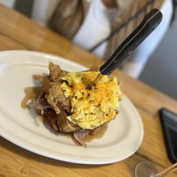 Food is spectacular, huge menu so "specials" menu is helpful. Great selection of coffee Always take leftovers b/c servings are ginormous! Love the service, Ms Erica was terrific! Parking easy Just love this place